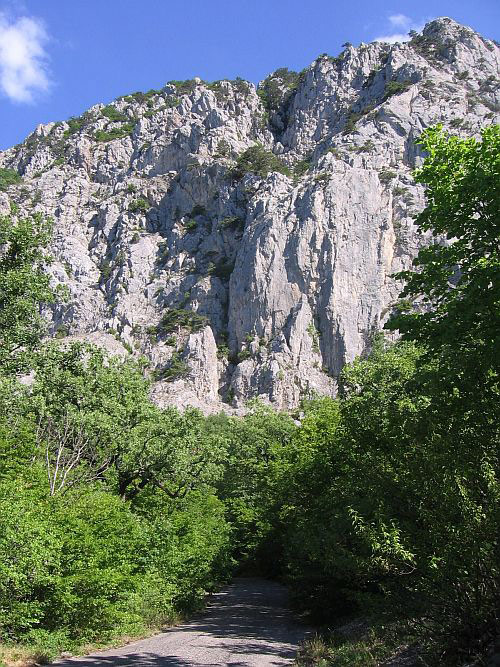 Старая дорога Ялта — Севастополь как раз лежит рядом с Чертовой лестницей. Из Оползневого до нее 9 километров вдоль каскадов скал со сложным рельефом.